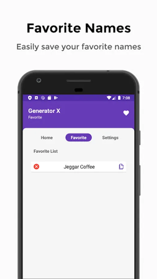 just tap the heart button you can easily save your favorite name or you can copy the name using copy icon