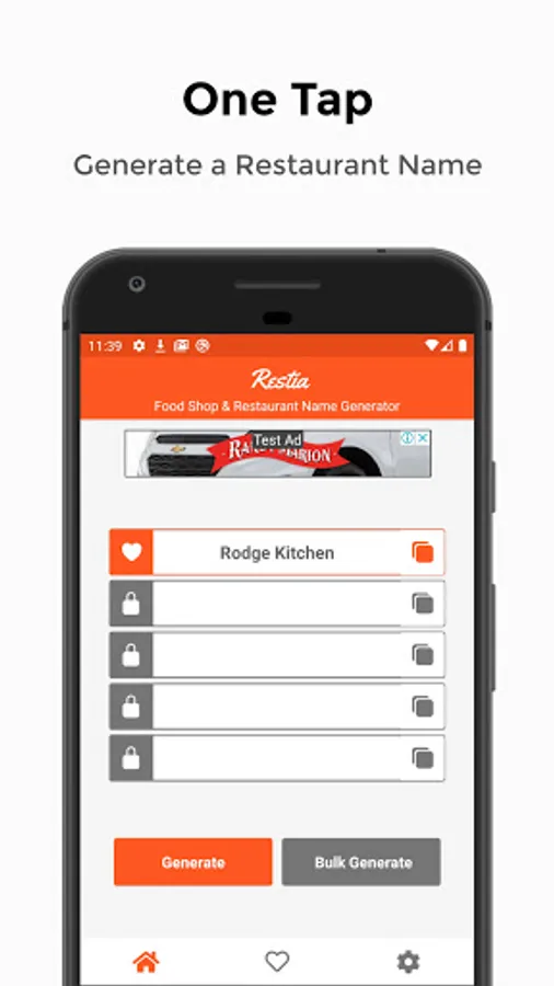 Restia is an app to help you generate a food shop or restaurant name for your new business, this app is very easy to use, just tap generate button and you will get a name. Tap-tap-tap until you find a good one, with restia you can also save your favorite name or copy it.