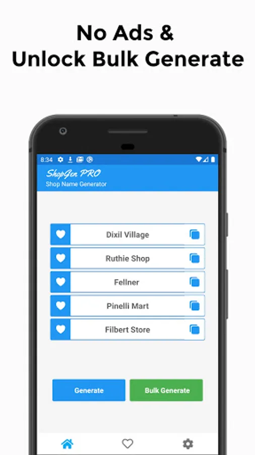 ShopGen Pro is a pro version of ShopGen, with pro version you can unlock bulk generate button and remove all ads in app.