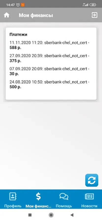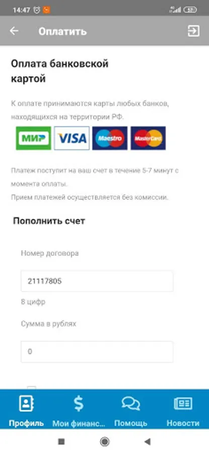 Pay - allows you to top up your balance.