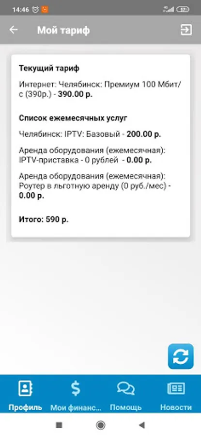 My tariff - tariff information and a list of monthly services.