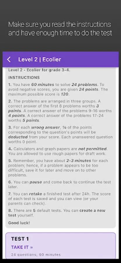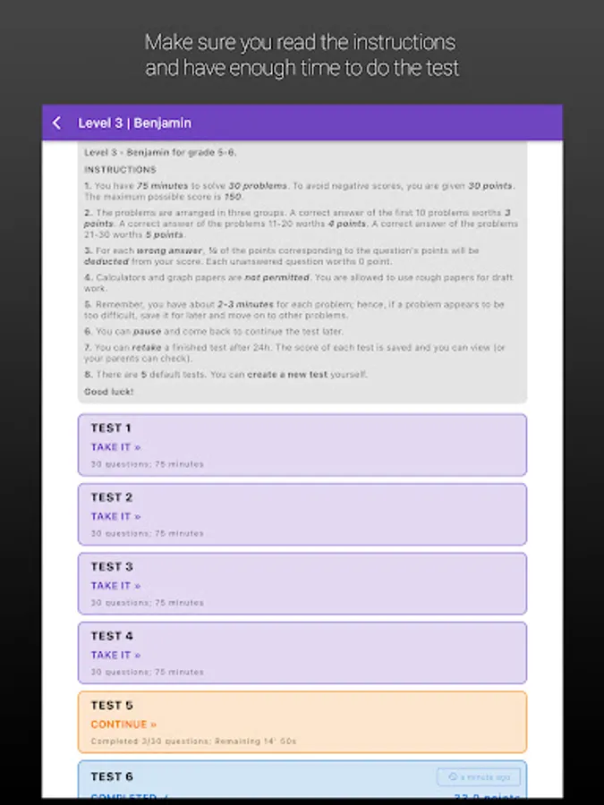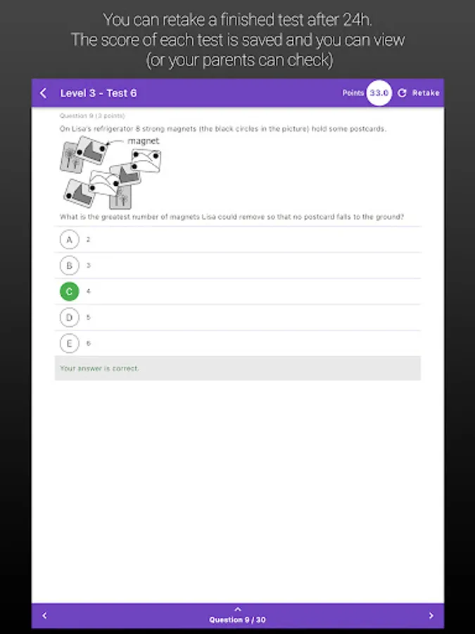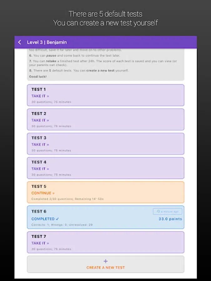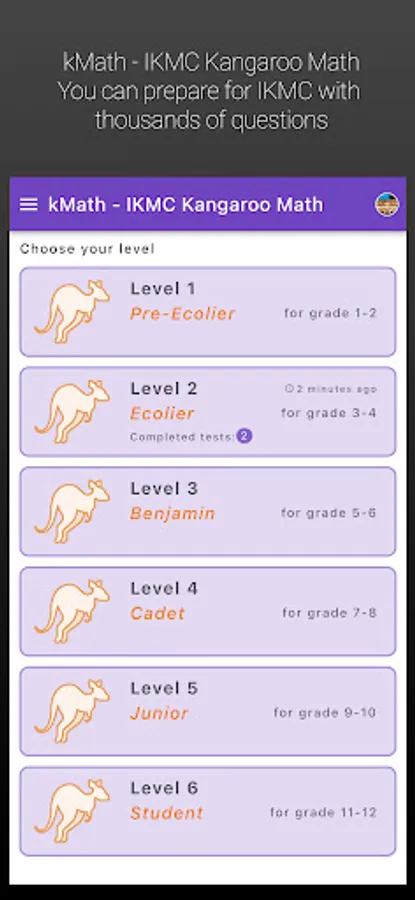 There are 6 levels from Pre-Ecolier to Student to practice with variety knowledge from grade 1 to 12.