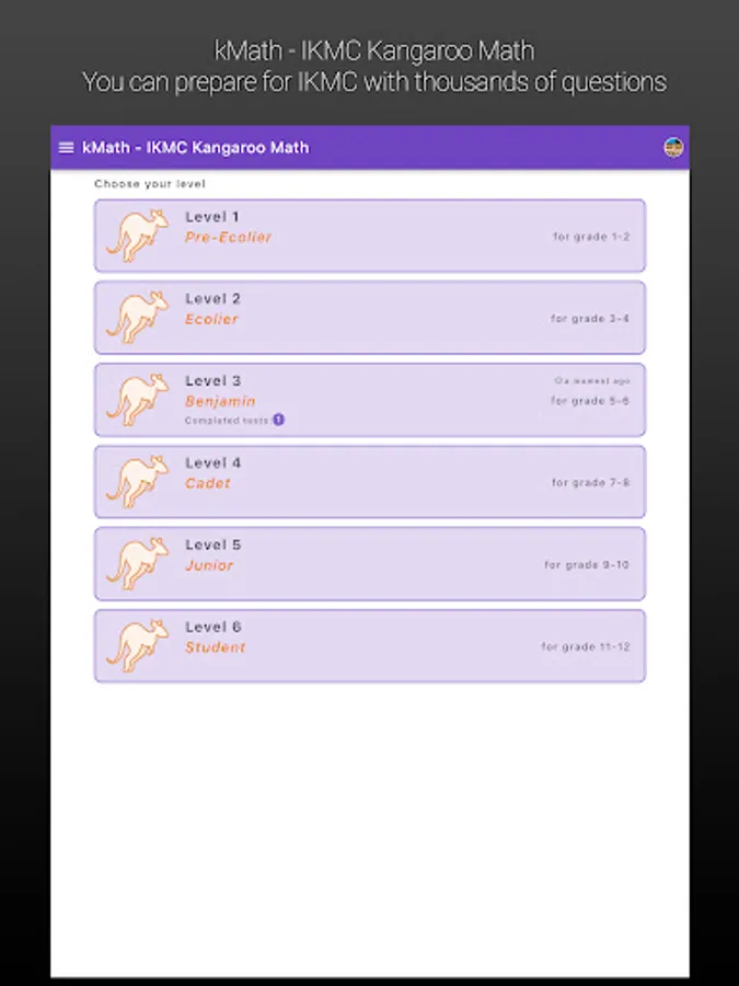 Users can prepare for IKMC - International Kangaroo Mathematics Contest with thousands of questions an explanations.