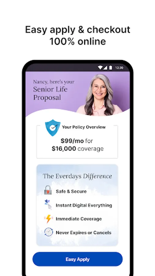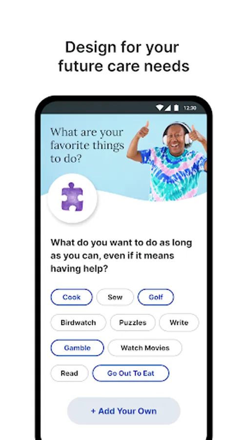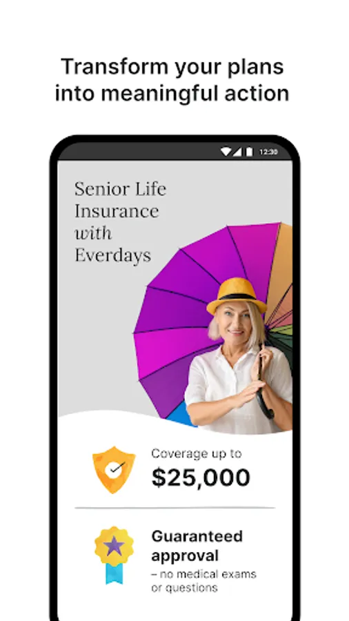 Everdays plans are really powerful, because not only are they grounded in your decisions, they’re also protected by the right insurance. We partner with reputable, A+ rated insurance providers to bring you our custom Senior Insurance, which transforms your plans from nice ideas into meaningful action. Uniquely designed coverage options are based on your plans, and are tailored to your needs to protect your future and your family.