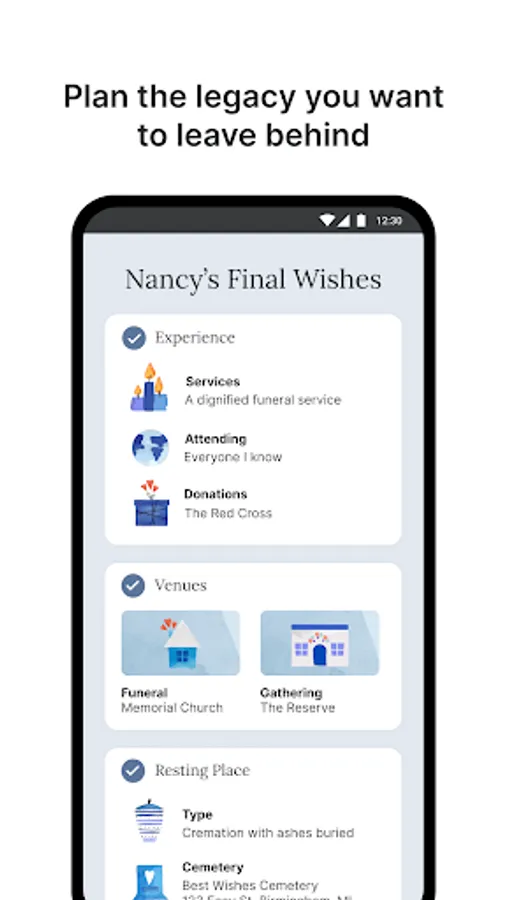 • Final Wishes - Plan your legacy so loved ones know just how to honor your life.