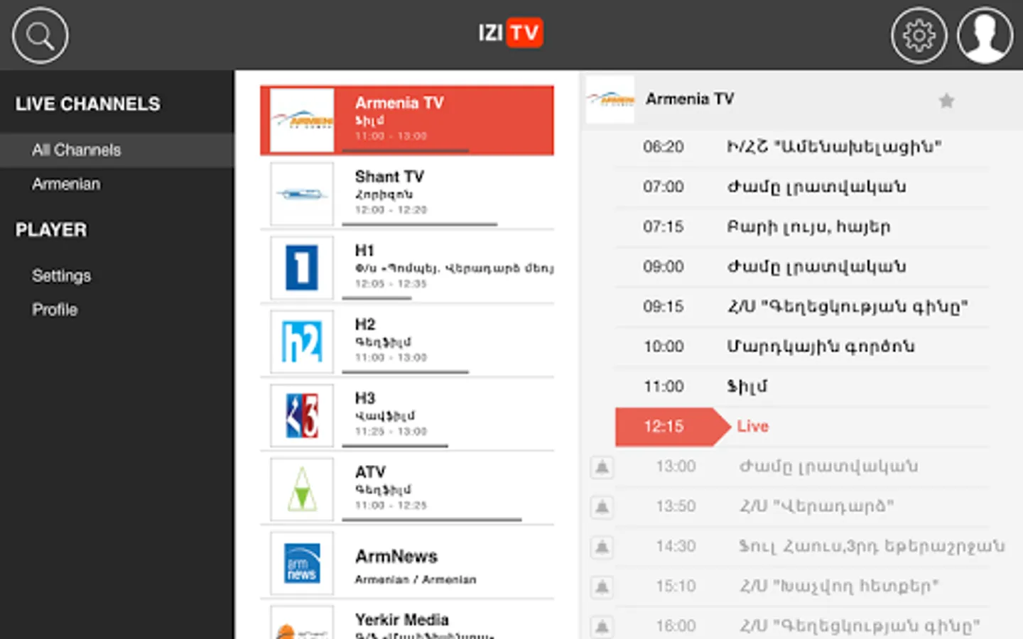 IZITV is a provider of Armenian TV channels in Europe, USA and Russia. With IZITV you can watch all Armenian TV Channels directly from Armenia in high quality.