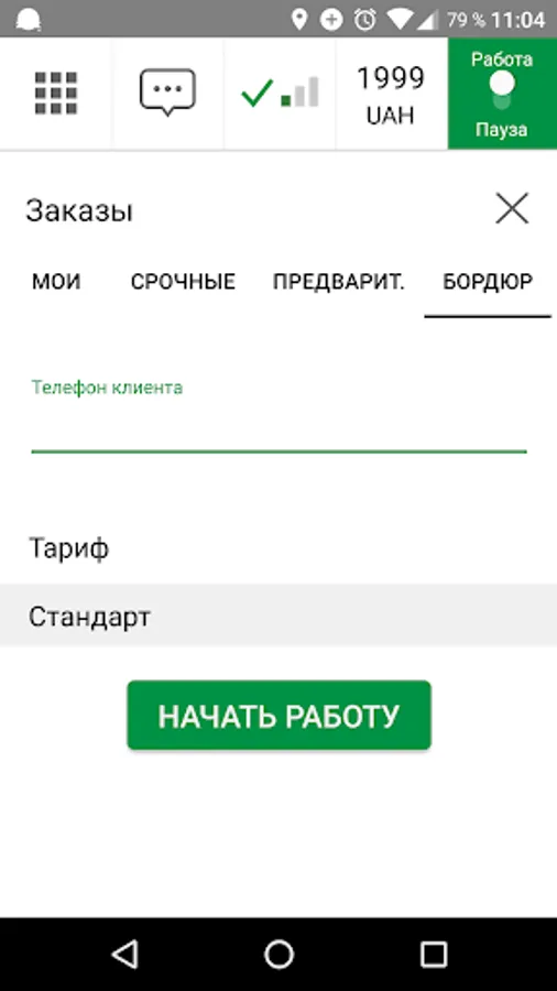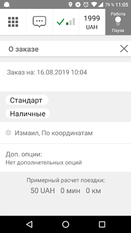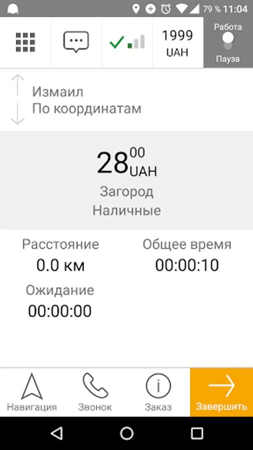 - When you are on shift, the application works even in minimized mode: it determines the location using GPS, in the taximeter mode the cost of the order is calculated;