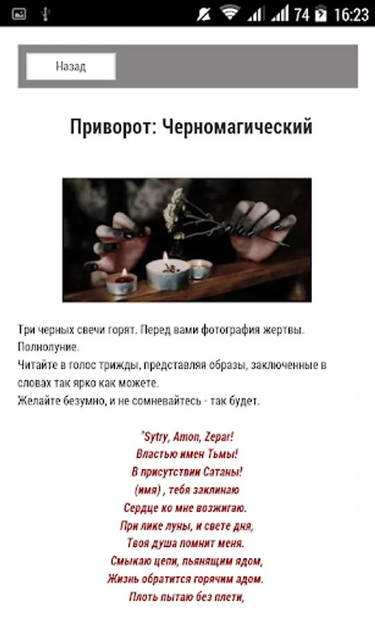 Going to knowledge includes rules magical work, the principles of selection techniques damage, magic defense, ceremonies on the fulfillment of desires, wealth and success, omens, lapels, binding healing.