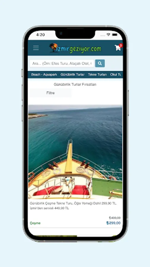 İzmir Geziyor ile tek tek acente aramanıza artık ihtiyaç kalmayacak, İzmir çıkışlı tüm turlar İzmir Geziyor’da en iyi fiyat avantajı ile satışta.