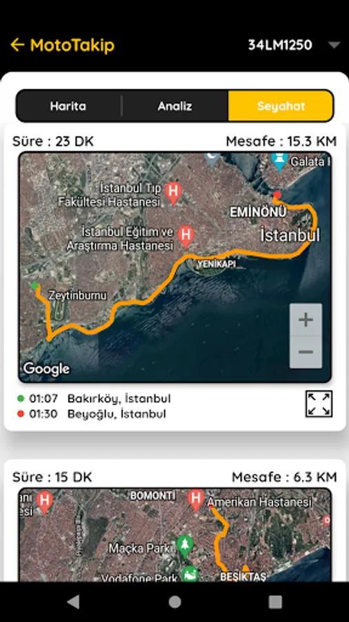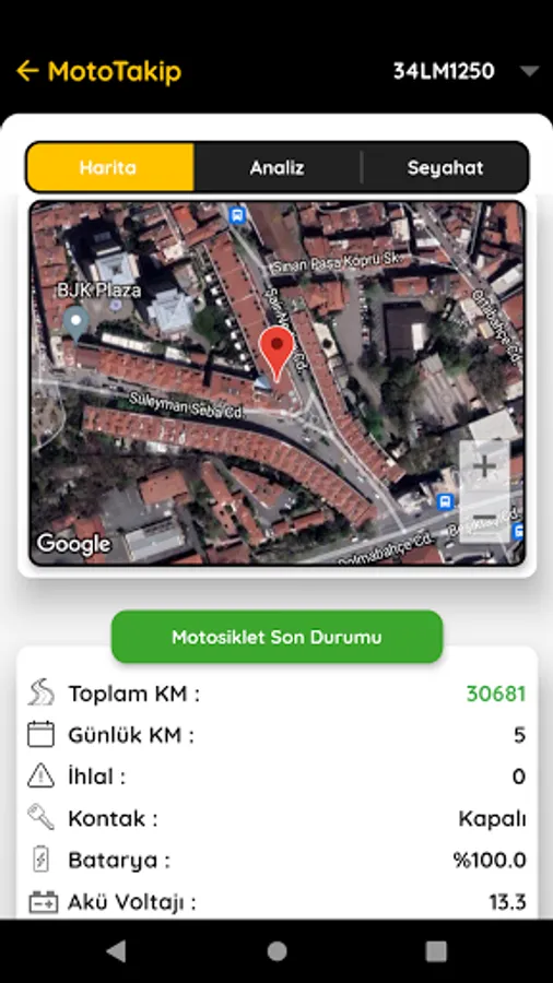 • You can follow your motorcycle live through the application, you can request support from our 155 Police teams by sharing your location with your friends and environment, or more importantly, with the police.