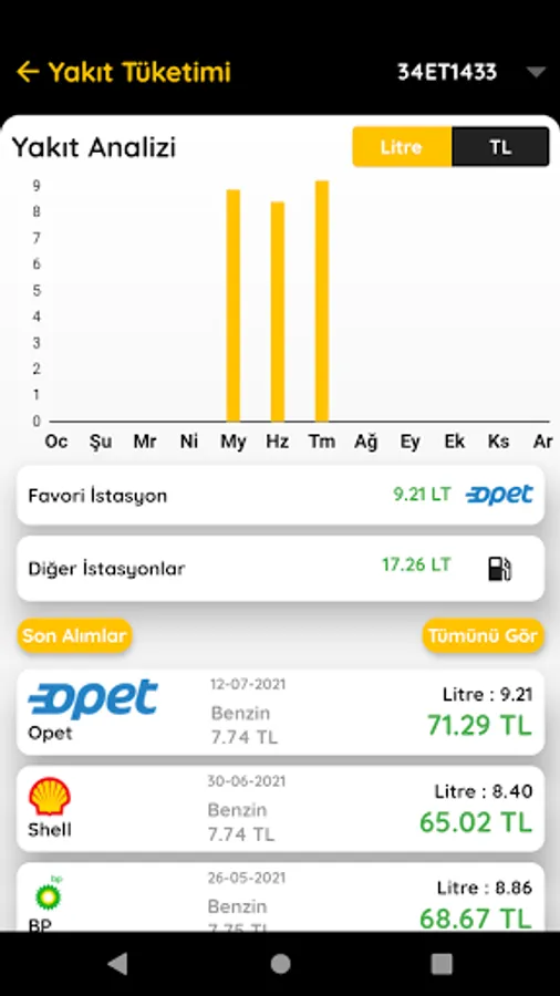 • In addition to the brand, model, year, engine volume information of your vehicle or motorcycle; Easily access and view fuel type, tank volume, average fuel consumption, horsepower, maximum speed, tire size information!