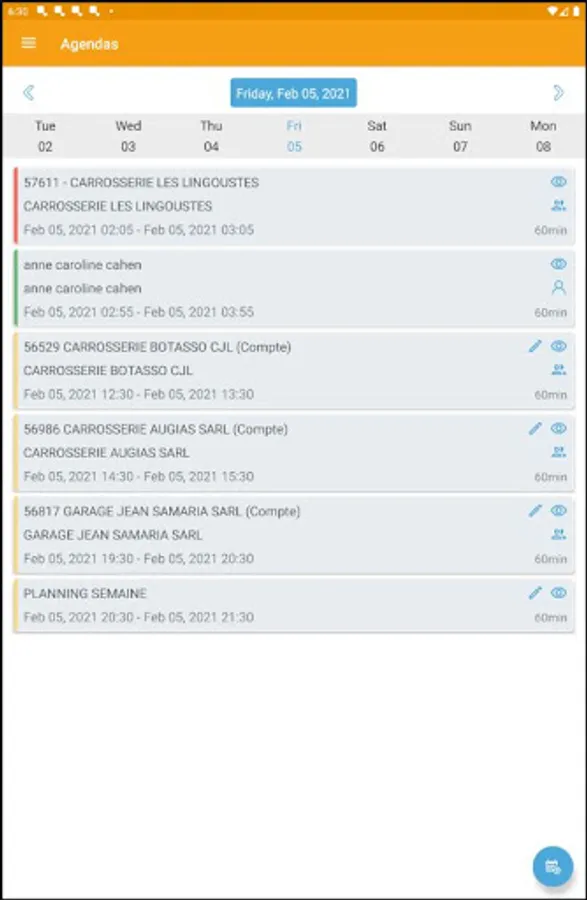 • Agenda: consultation of past and future appointments; creation of appointments with clients and contacts; appointment modification