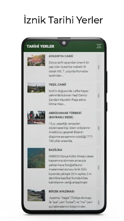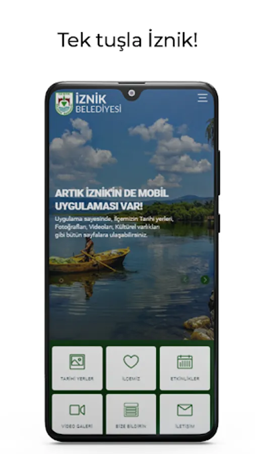 With the Official Mobile Application of İznik Municipality, you will be able to access a lot of information about İznik and contact the municipality with a single button,