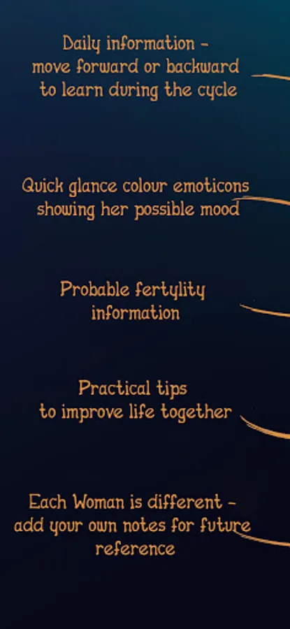 Created by men, verified by women, proven by improved life together: A man’s calendar of woman's feelings and wishes.