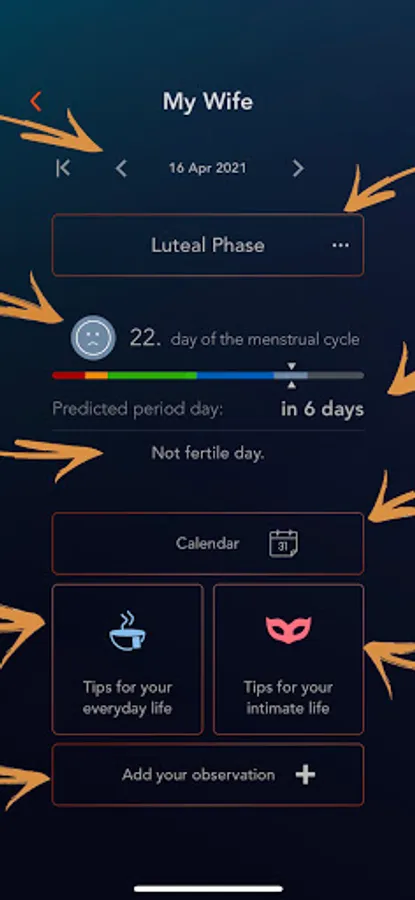 - quick glance emoticons showing her possible mood on that day of the cycle;