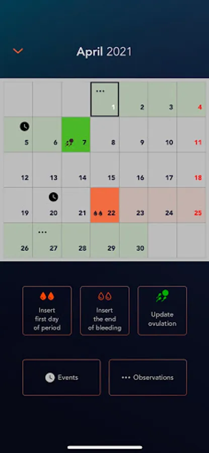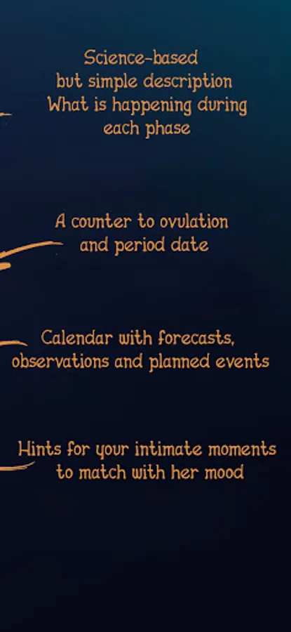 - Simple graphic calendar of a woman's cycle with the possibility of forecasting many months ahead;