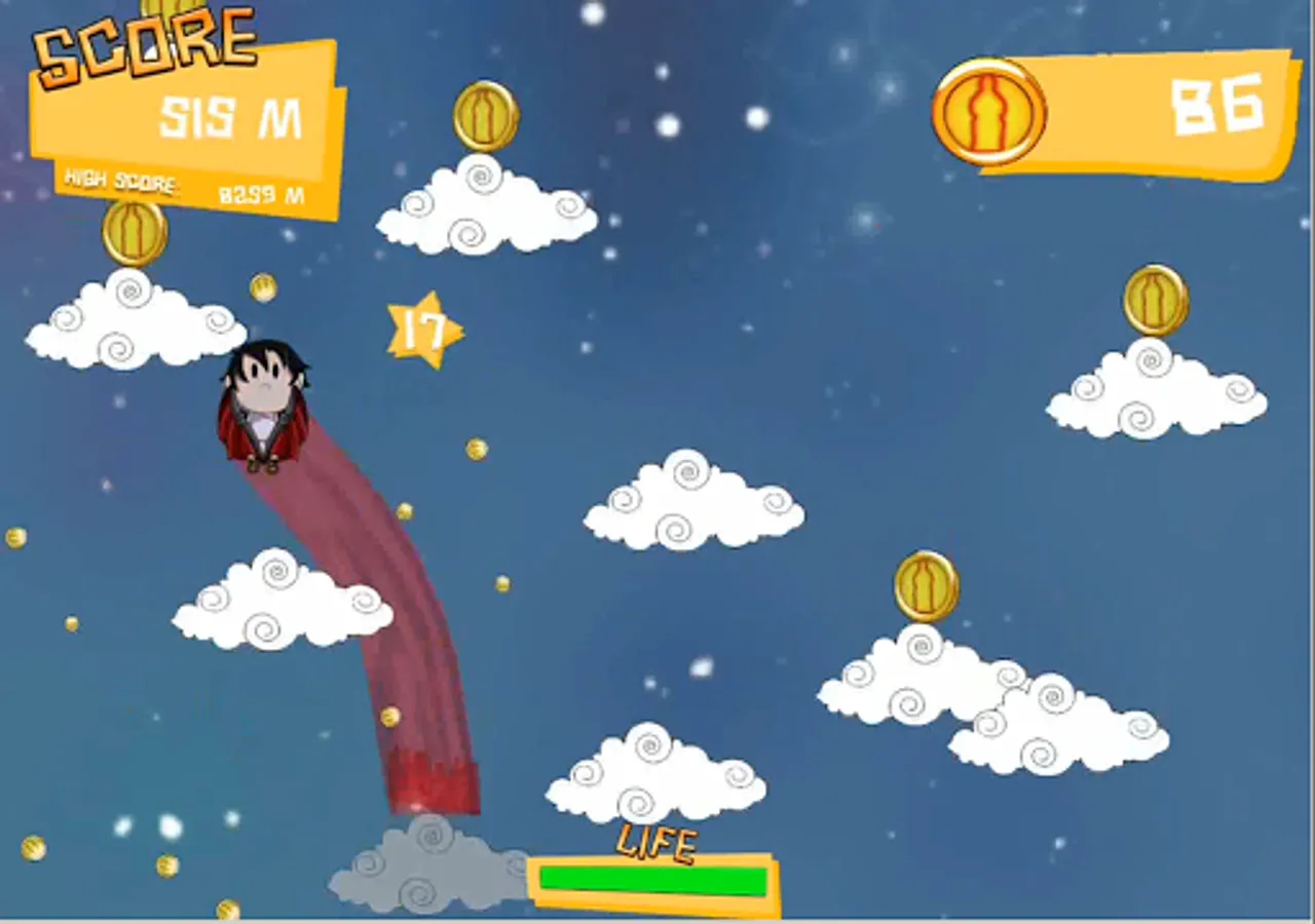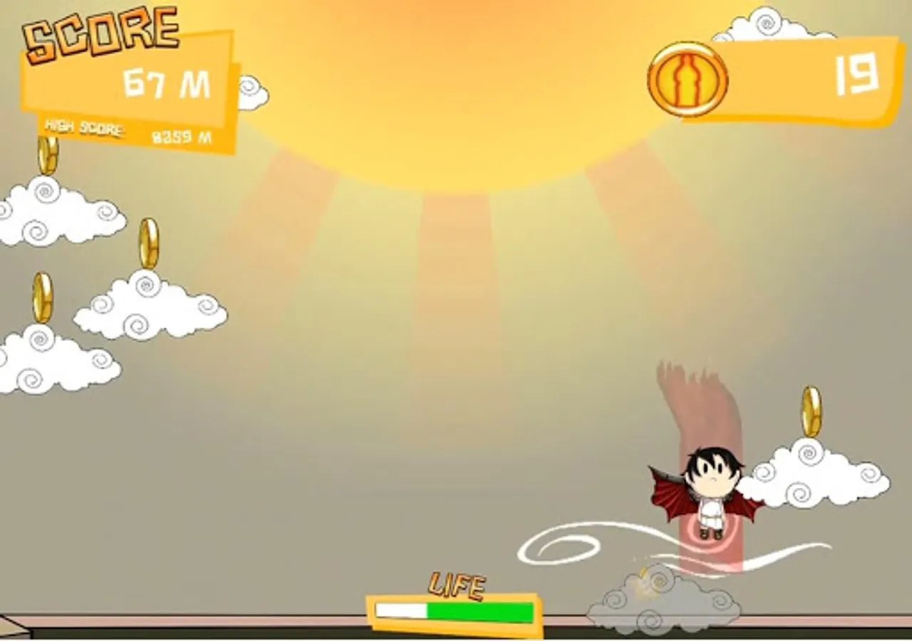 Help ikarus in this incredible journey through the sky. Young Ikarus must jump from cloud to cloud and and get as high as possible. Will you be able to help him? Jump from cloud to cloud to get the highest jump !