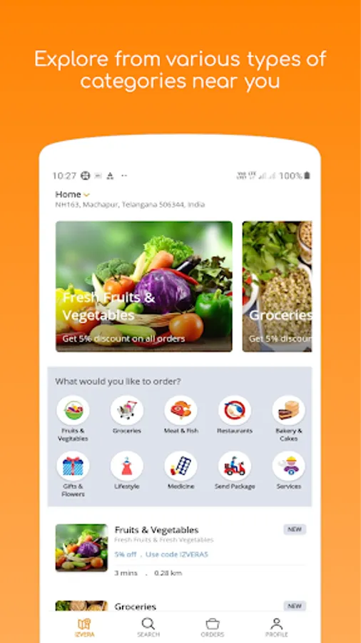 Izvera's services include the delivery of packages (Courier service within a city, Deliverable items are limited), groceries, vegetables, food, electronics, general store products and more. We help customers hire local services such as repair & maintenance, home care services, business services, event management and more.
