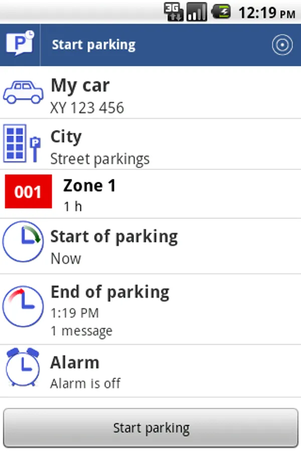 Parking SMS Scheduler allows you to specify the parking start time and the duration of the parking, and when its time to pay parking it automatically sends a SMS to pay parking fee.