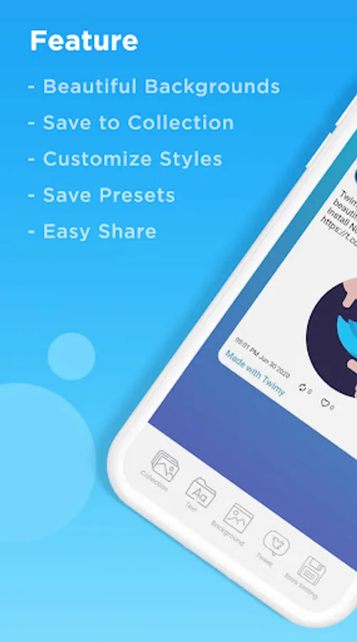 This app use to tweet post maker from your original tweet and share your tweet post pic with friends.