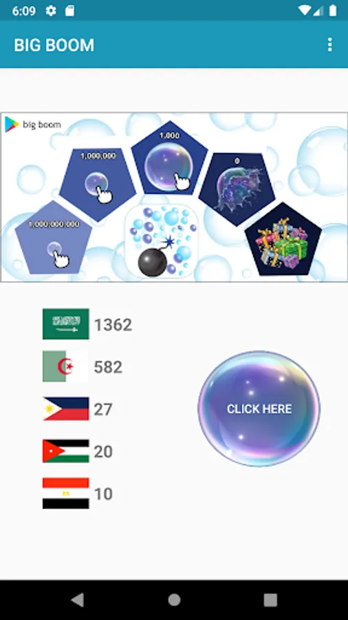 - عند انتهاء العداد ، يقوم التطبيق باختيار الفائزين من الدولة الحائزة على أعلى عدد من النقاط.
