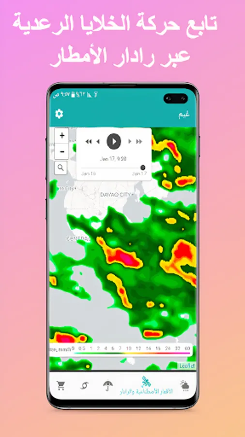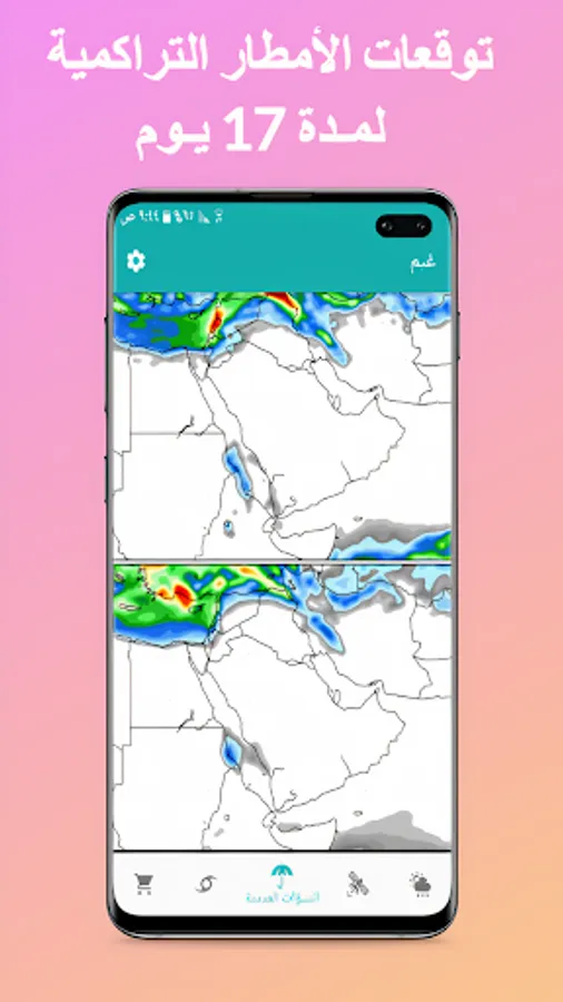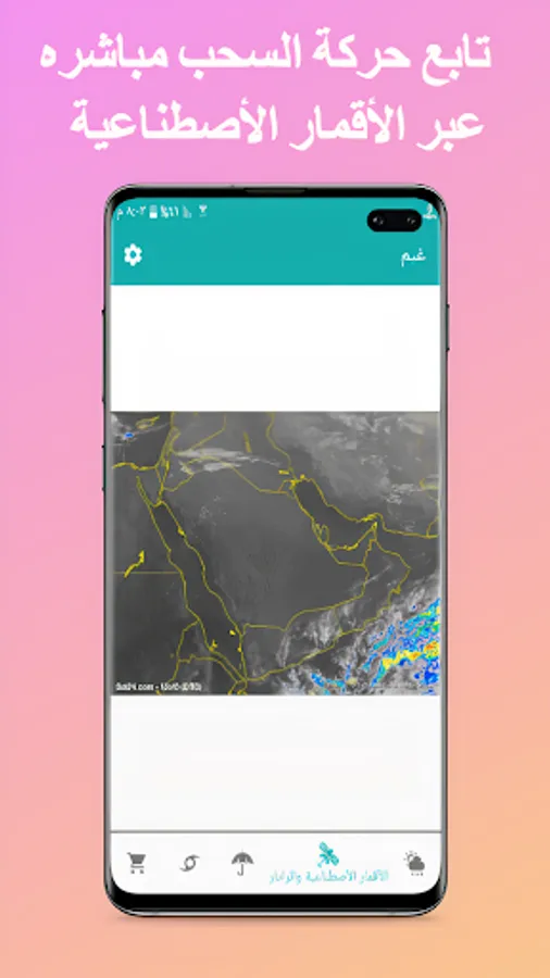 - Satellites and weather radar: It contains direct images of clouds and rain movements as well as rain radar and lightning, where through rain radar you can track the movement of rain cells and monitor their strength on your area, in the same way as the Gaith radar and the Emirates radar