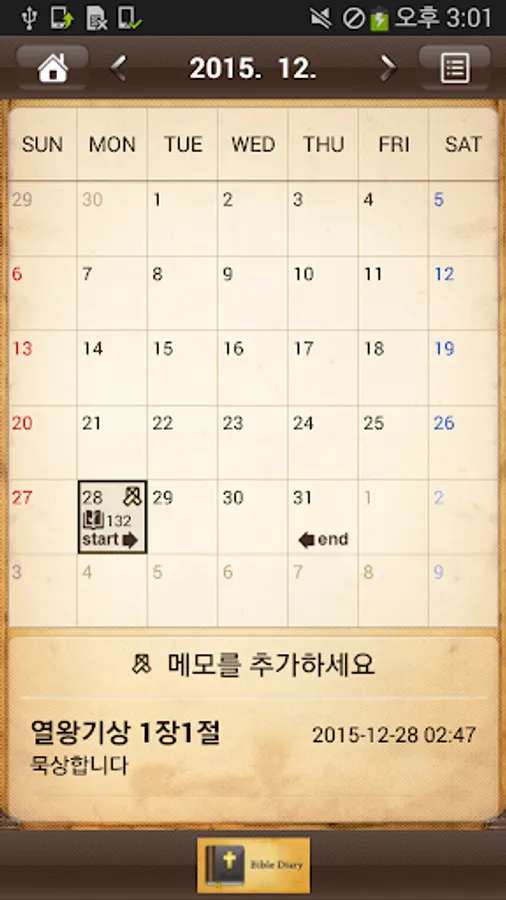 ➊ Click on the icon to read the Bible. Start reading from the last verse ildeon.
