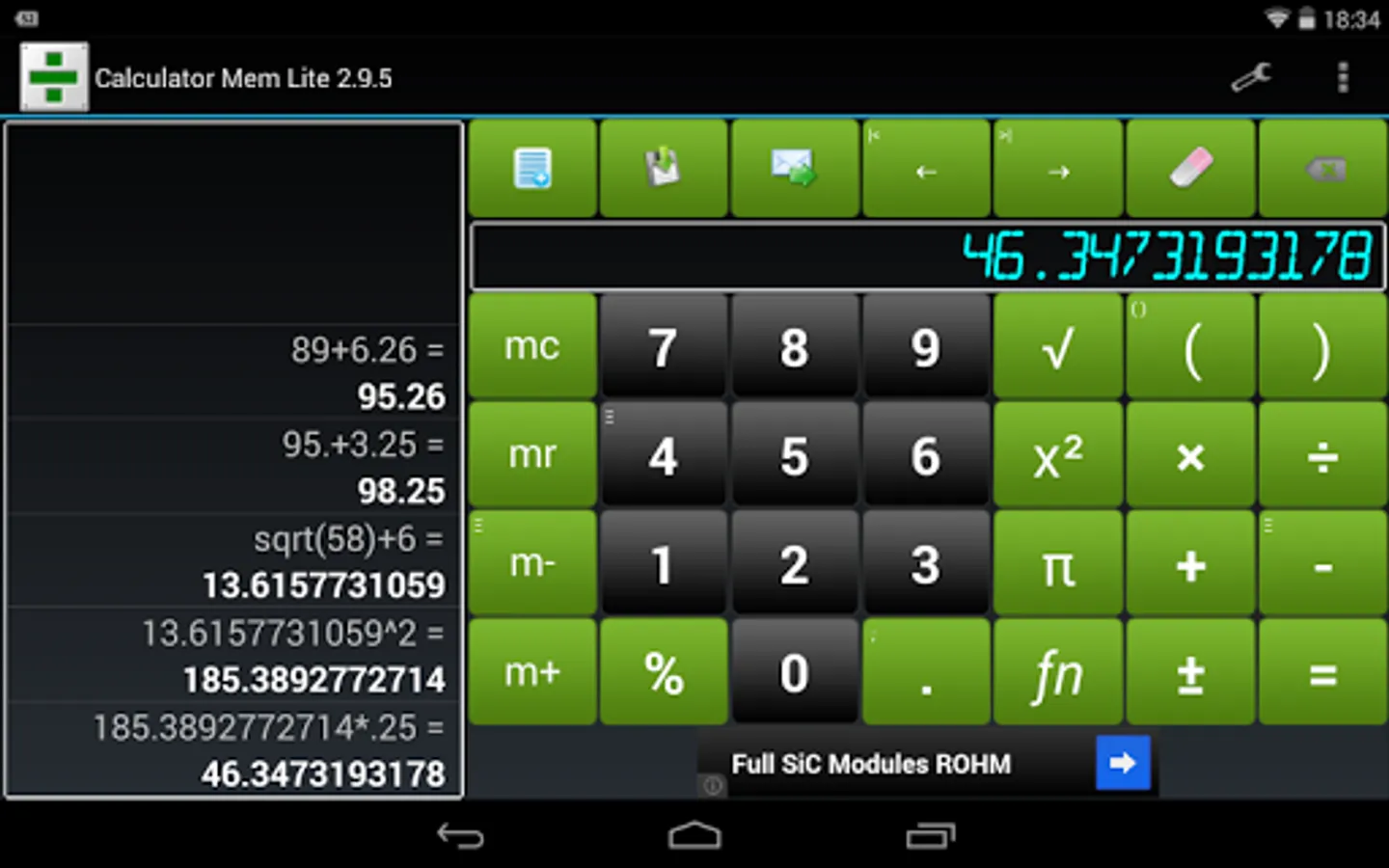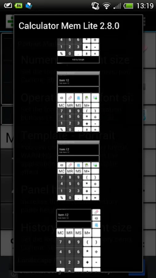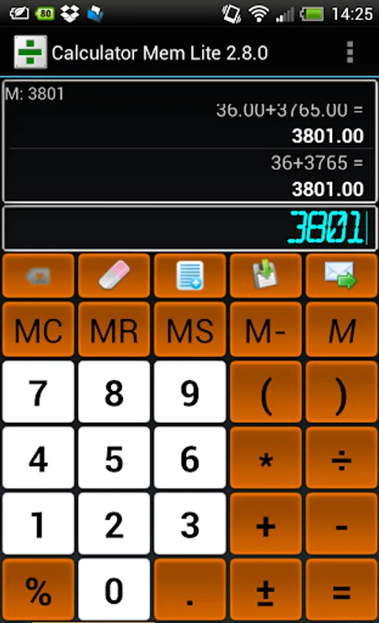 E-mail your calculations, or save them to the clipboard or the SD card. Calculator Mem includes full instructions so you can take advantage of all its features.