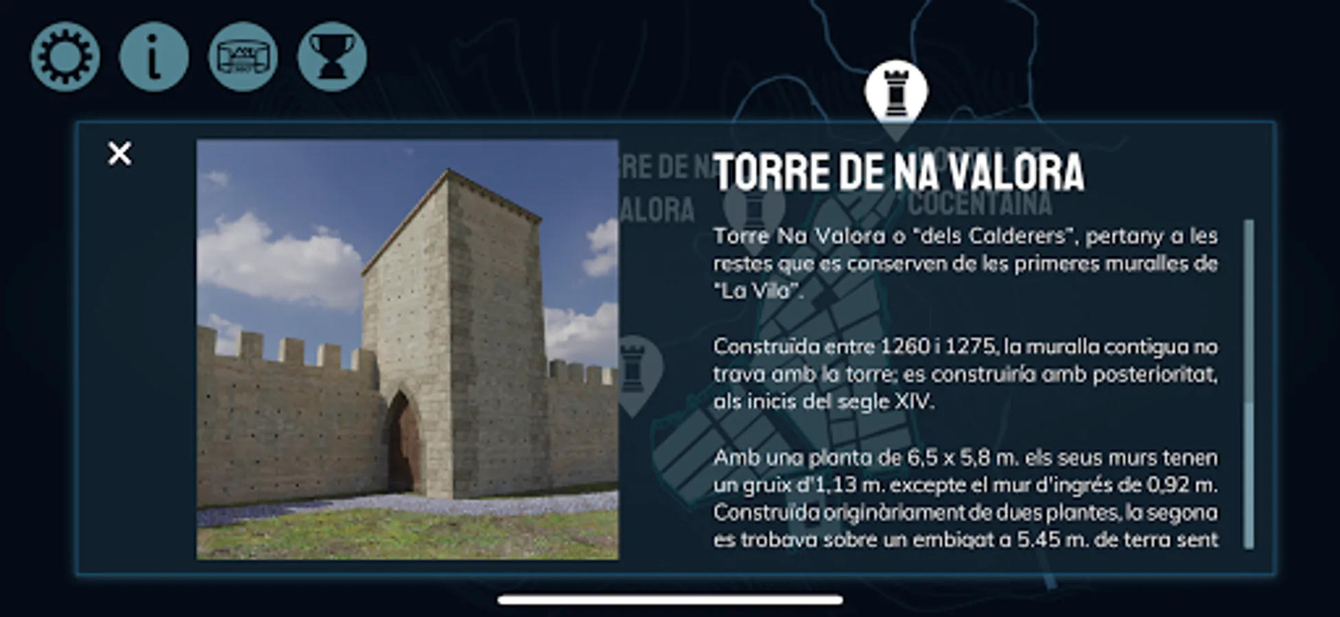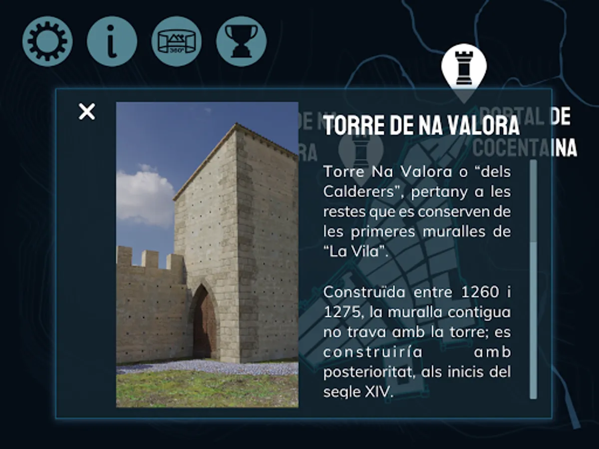 This app is a tour in which you will be able to meet, through virtual representations, how the walls of the medieval Alcoy were, from its foundation in 1256 to the 16th century.