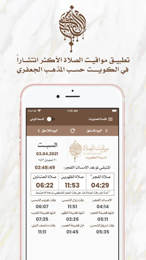 الاصدار الرابع من تطبيق ShiaPrayersQ8، مواقيت الصلاة لشيعة الكويت.
