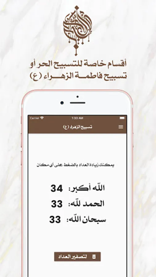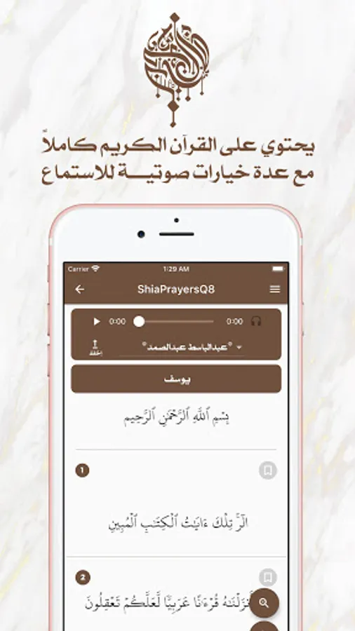 يحتوي على القرآن، أدعية، زيارات، عداد تسبيح، والعديد.