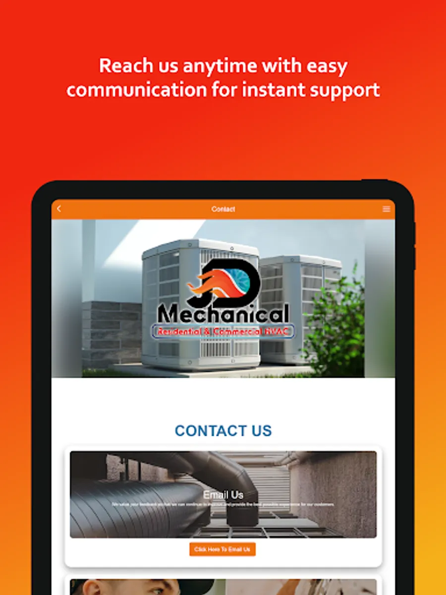 Welcome to the J&D Mechanical mobile application experience! Here you can stay connected with J&D Mechanical with swift updates, and many exclusive app features that help you to get your HVAC needs met!