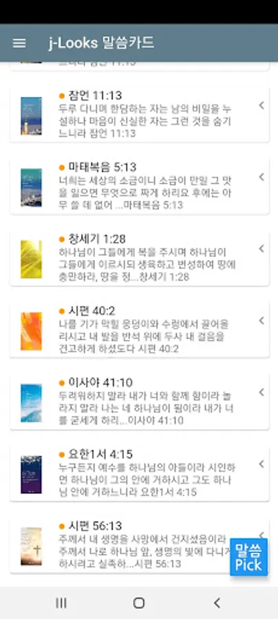 ▶100여 장의 말씀카드와 함께하는 모바일 큐티