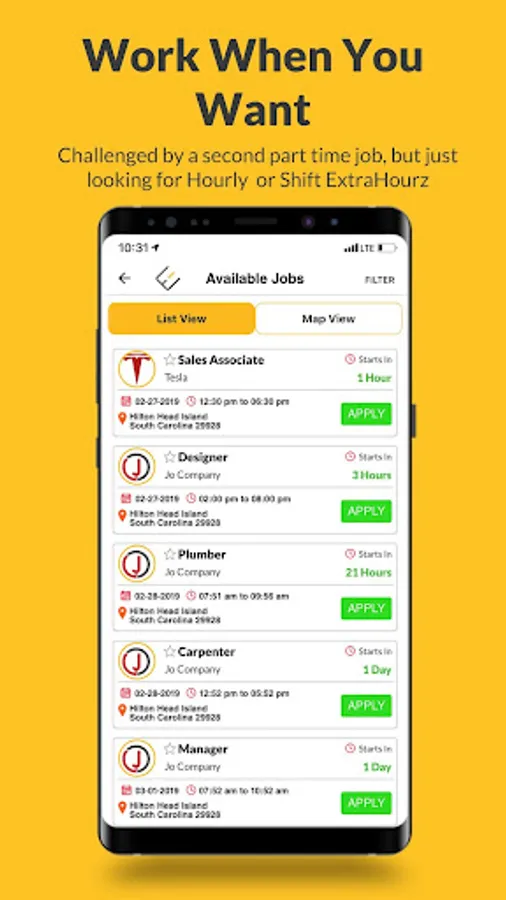 ExtraHourz is the platform for finding immediate hourly or shift based nearby jobs now. It is a simple location and industry based job mobile app connecting you, the job seeker, with business owners seeking eager local workers for short term immediate job openings. It is the on-demand location-based app for today’s hourly workers and the job providers who rely on them.