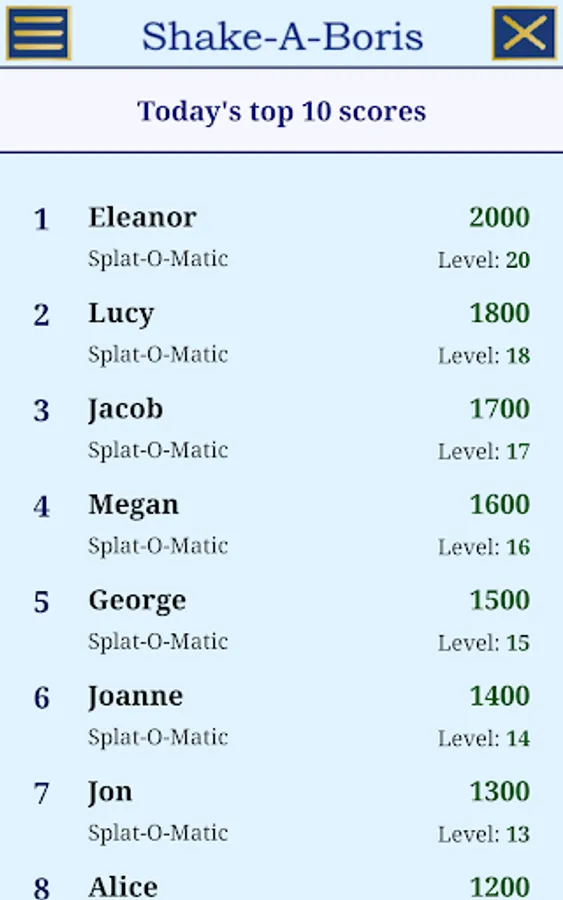 Shake-A-Boris is a member of the Splat-O-Matic family of games.