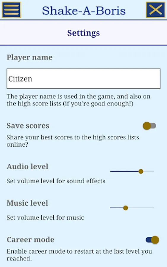 NO IN-APP PURCHASES: EVER! - Retro 8-bit sound tracks - Progressive, Challenging, Never Ending game play - Daily and All-Time high score lists - Career mode – Junior mode.