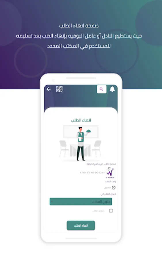 Determining the location of the service requester through the office QR code that is attached to each office, with the flexibility to modify the location in case of moving from one office to another.