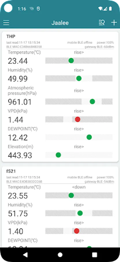 Jaalee APP is a software for managing equipment such as lithium temperature and humidity meters. You can view nearby device data or remotely view online device data in real time, and have historical data analysis and export functions.