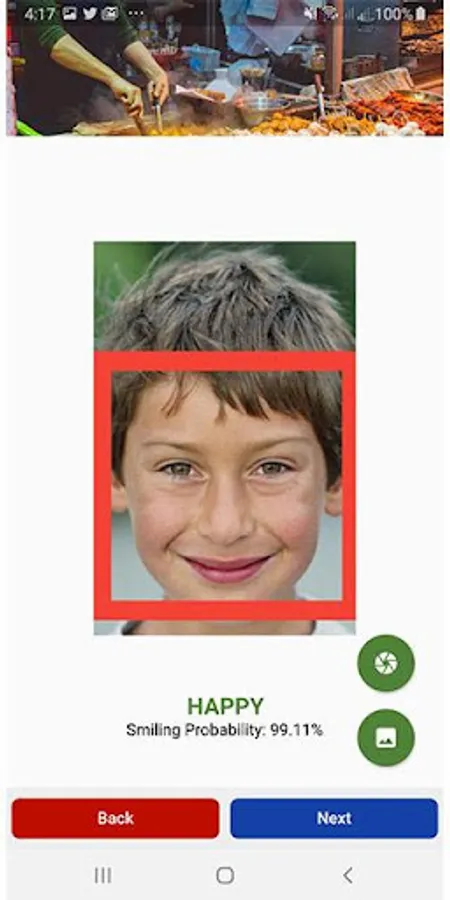 This app uses the ML kit for detecting faces and classifies the smile probability. With this, the system can suggest a list of items for the particular customer's emotion.