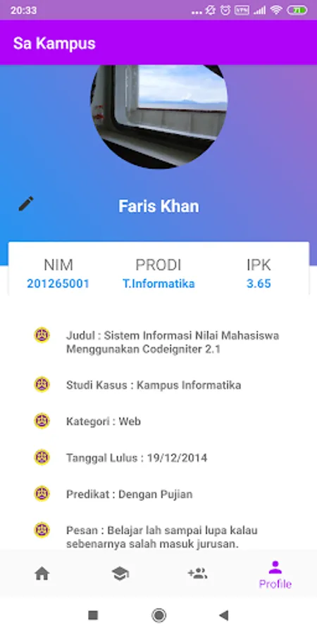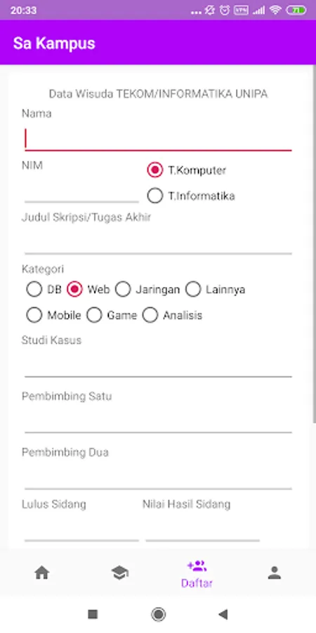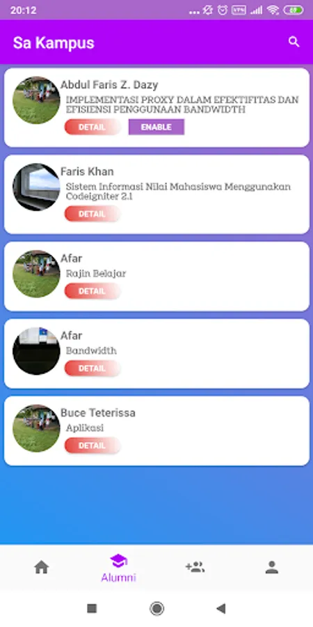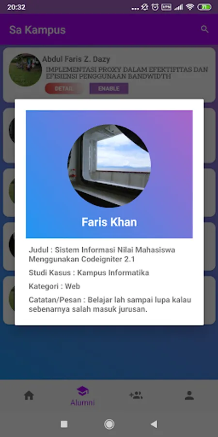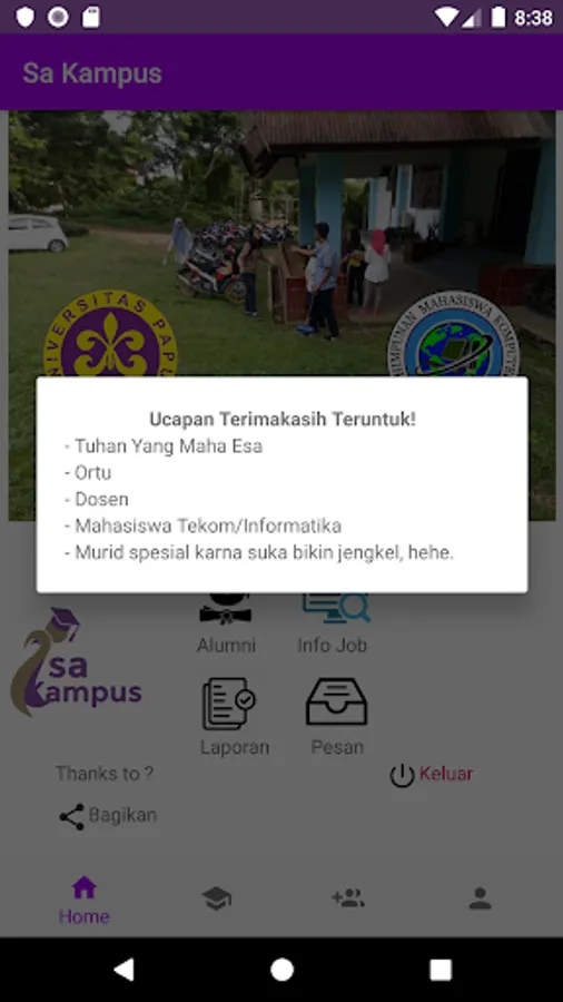 Sa Kampus is an application to store alumni data that can be used to view TA / Thesis titles as a reference for the next level of younger siblings and also as a means of communication for alumni who have graduated.