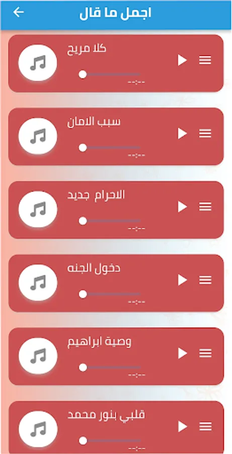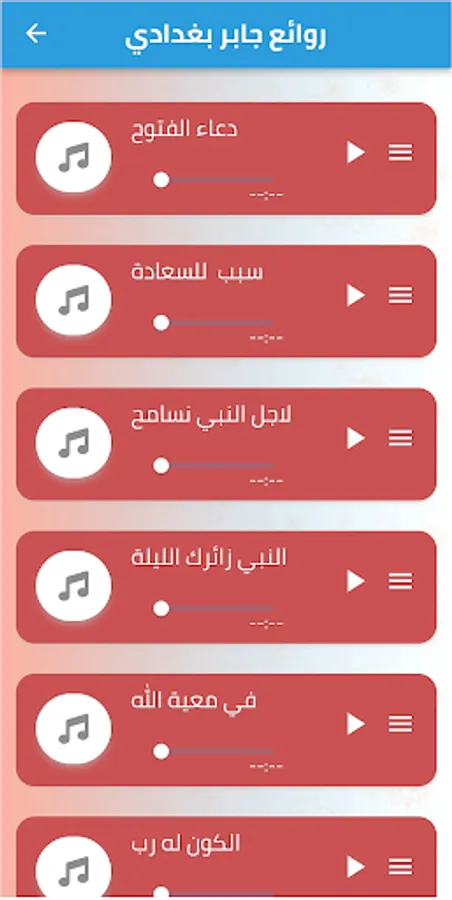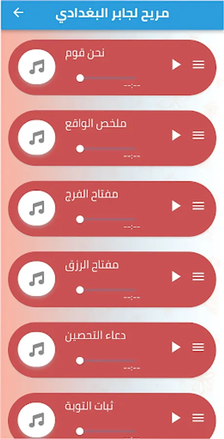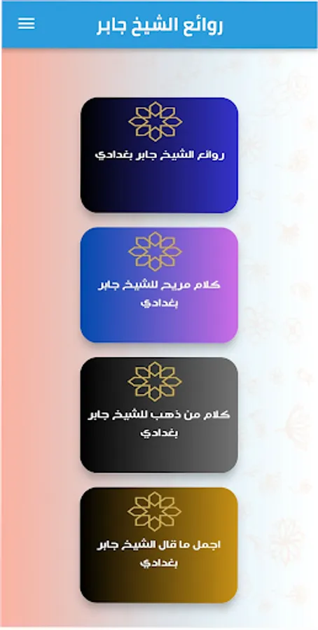 The application features short audio clips of Sheikh Jaber Al-Baghdadi