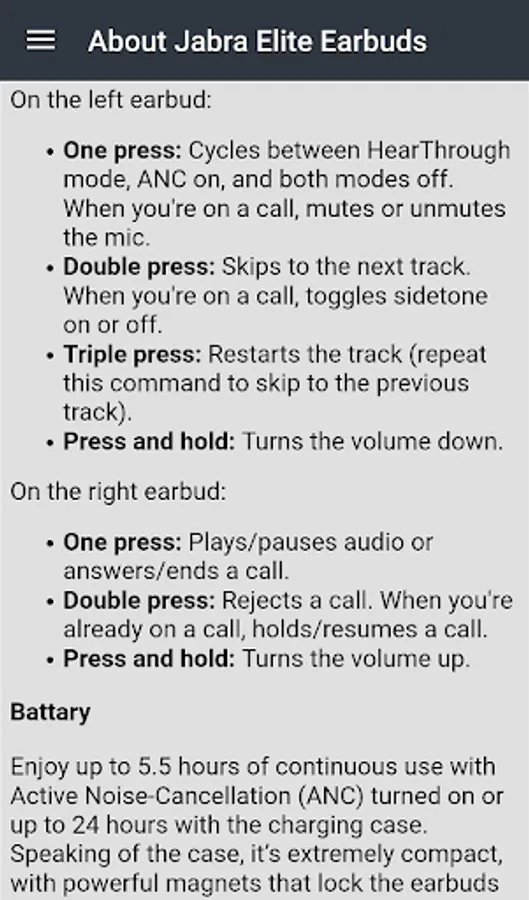 This app is a guide that should be at hand for anyone with Jabra Elite Earbuds. It does not belong to an official brand.