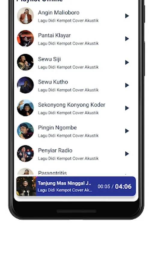 This Offline Mixed Acoustic Didi Kempot application is a Didi Kempot mp3 song player application, the most complete acoustic cover version, which we present to Didi Kempot campursari song lovers. Didi Kempot's offline mp3s are still very popular in all circles, especially Ambyar friends who want to reminisce about listening to Didi Kempot's collection of melodious campursari songs. Didi Kempot's campursari mp3 in this application is an acoustic cover version, with a very melodious voice. We present this application exclusively to offline Didi Kempot mp3 connoisseurs and also Didi Kempot fans or Ambyar friends, Kempoter etc. who have difficulty finding the most popular and complete Didi Kempot campursari collection. Do not worry!! This application is offline, so once downloaded it can be played without an internet connection again, and it's free forever.