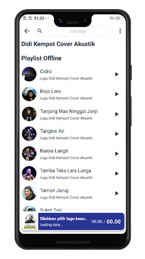 The following is a list of Didi Kempot Acoustic Offline songs in this application: