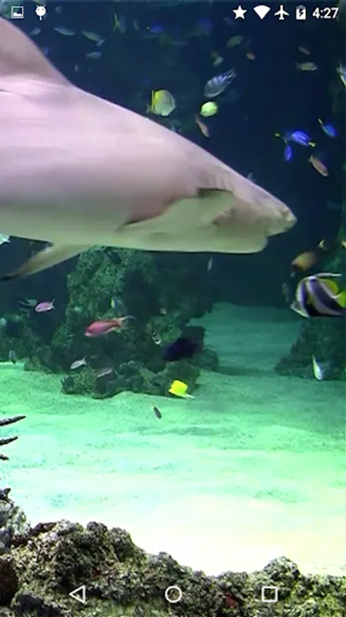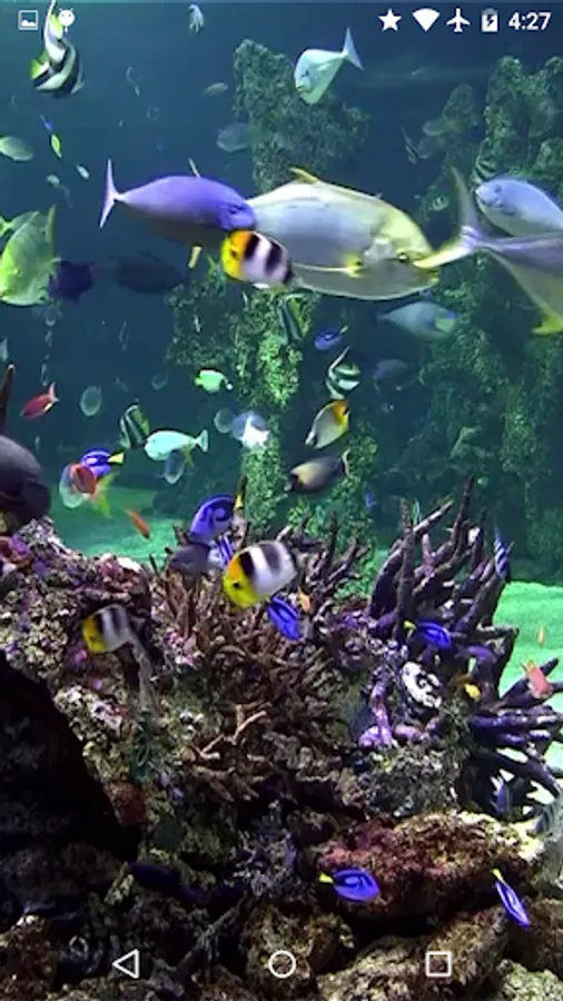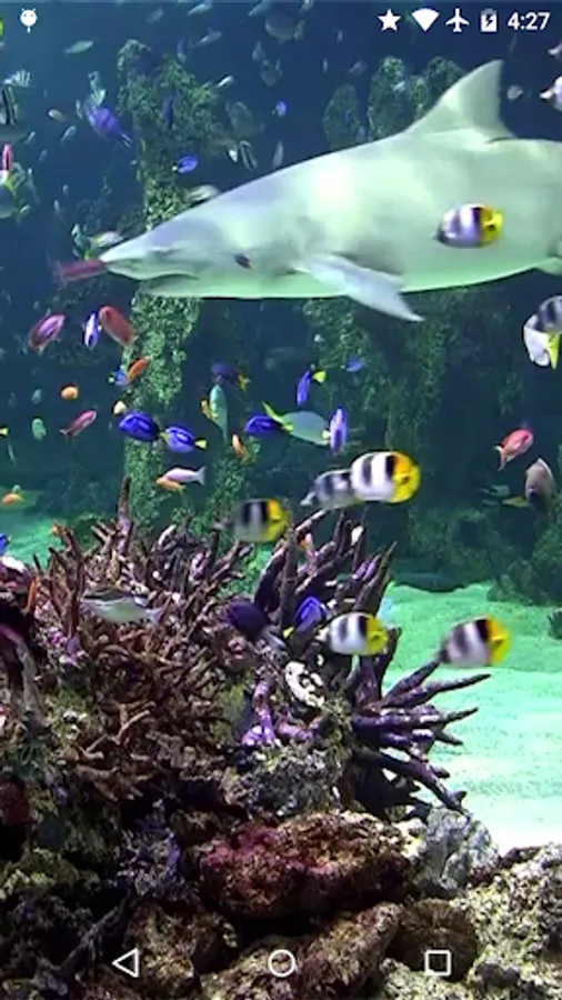 Set real aquarium video as live wallpaper. Cool wallpaper with sharks and tropical fishes in saltwater aquarium.