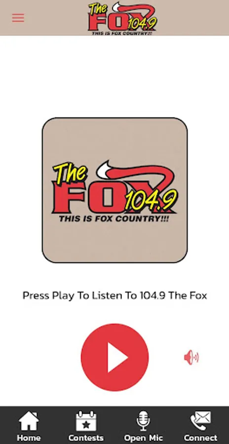 The official app for 104.9 The Fox is here! Get the app for quick access to info about local events and concerts! Listen to us live, contact us, see song and artist info, use our alarm, and even record audio messages with Open Mic, all on the app!