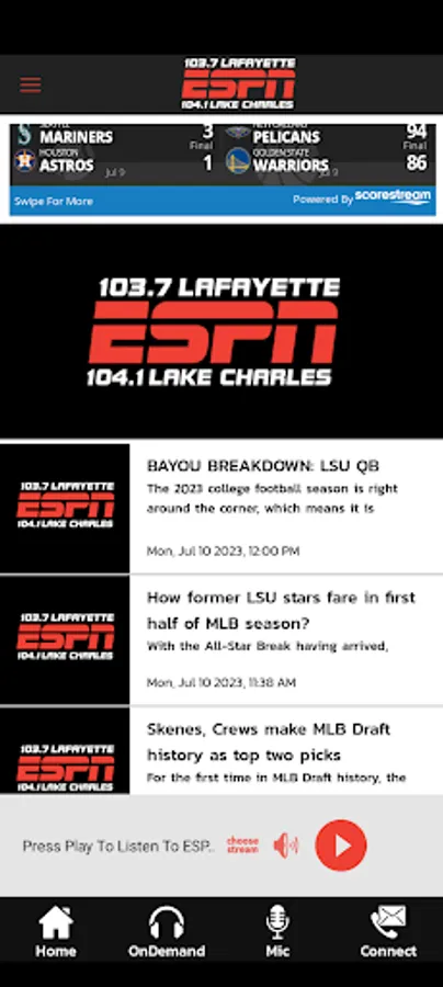 ESPN 103.7 Lafayette and 104.1 Lake Charles is Southwest Louisiana's Sports Station and your place for the best sports talk in the area! We are also your home for the LSU Tigers, Houston Astros, and After Further Review with Matt Moscona!