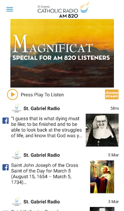 St. Gabriel Radio’s mission is to provide quality programming that is faithful to the teachings of the Church and presented in a way that inspires conversion heart and a deepening of faith while building up the local body of Christ. St. Gabriel Radio is bound to accurately and fully transmit the Faith as proposed by the Teaching Authority of the Church. We bind our broadcasting message to the standard of Holy Scripture and the Catechism of the Catholic Church, the vehicles Christ has given us for knowledge, content, and clarity.