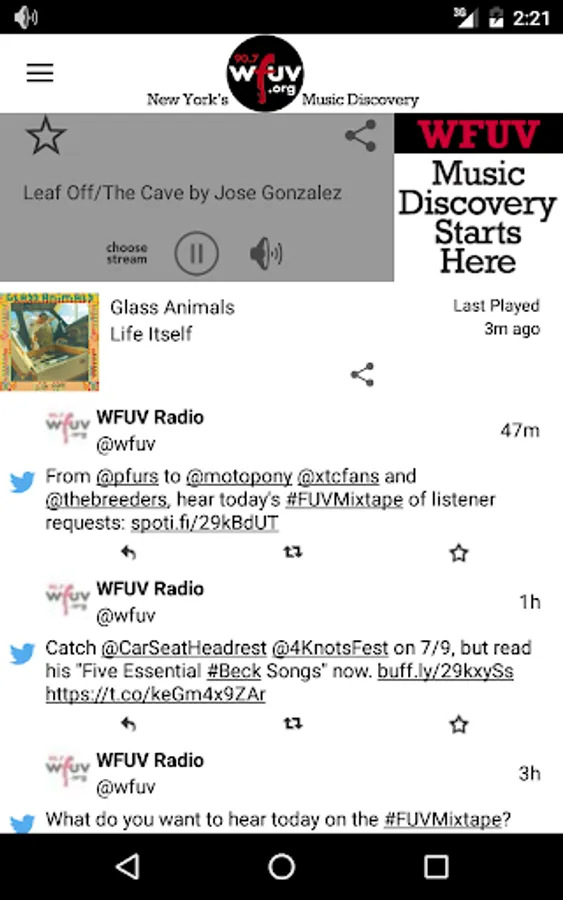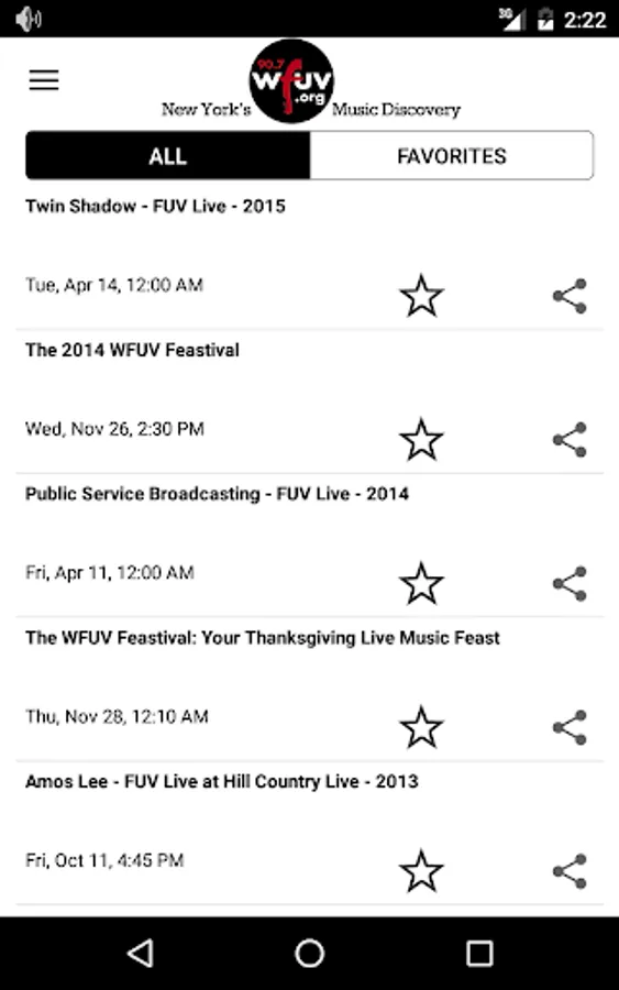Choose from two live streams, thousands of performances in the FUV Live Vault, or video of private concerts and sessions for your commercial-free listening and viewing pleasure.