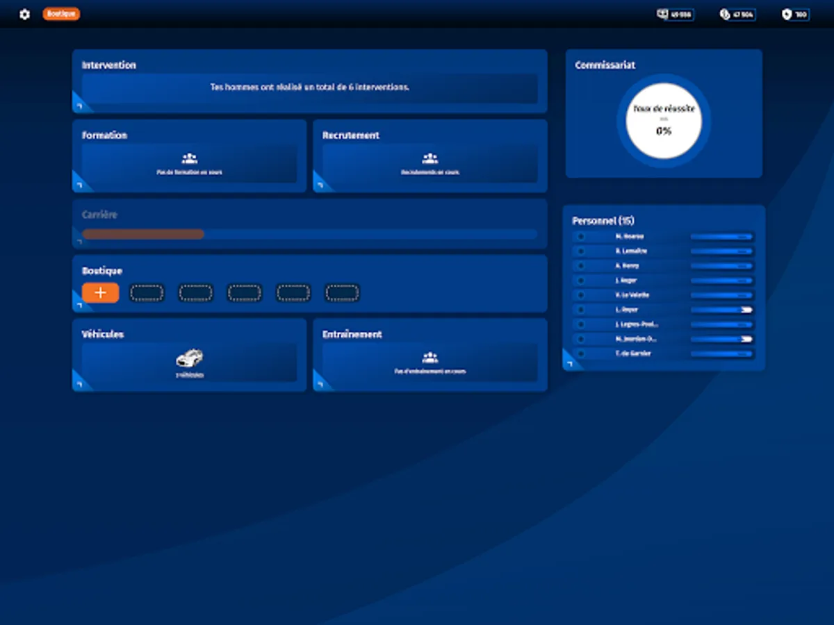 Start with a small town police station and develop it. To do this, gain the confidence of the population by successfully completing your police missions: it is they who will allow you to unlock options to improve your police station. You will then be able to buy vehicles that will allow you to manage increasingly complex missions. Each vehicle will have its own particularity: maintain them and choose them carefully with each mission to gain levels and increase your budget.